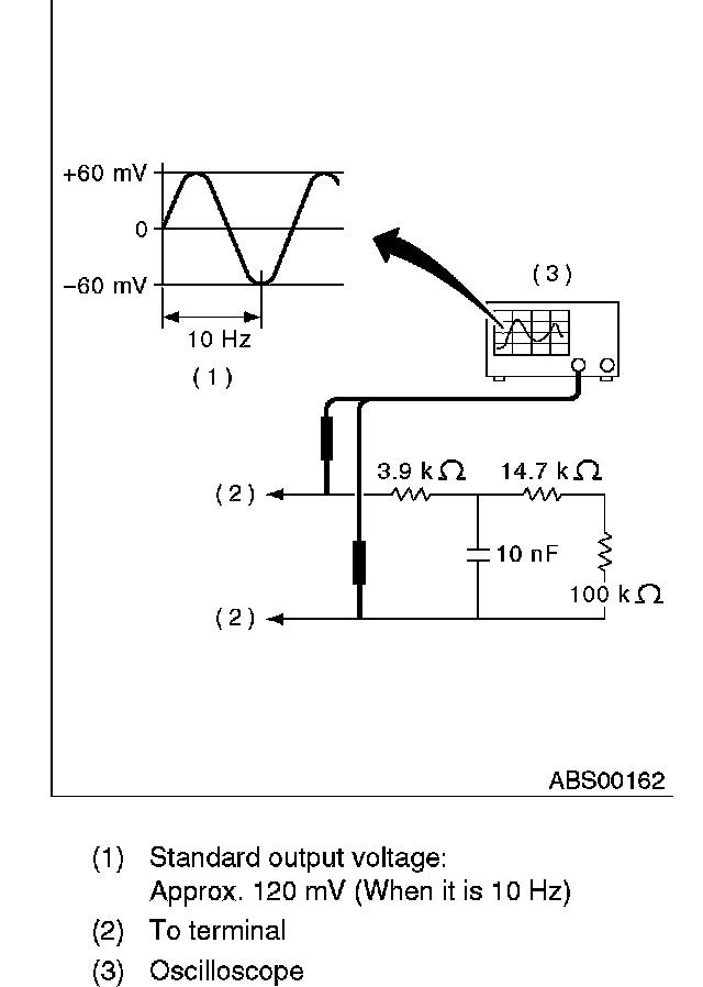 Output voltage can be checked by the following method. Install resistor and condenser, then rotate wheel about 2.75 km/h (2 MPH) or equivalent.