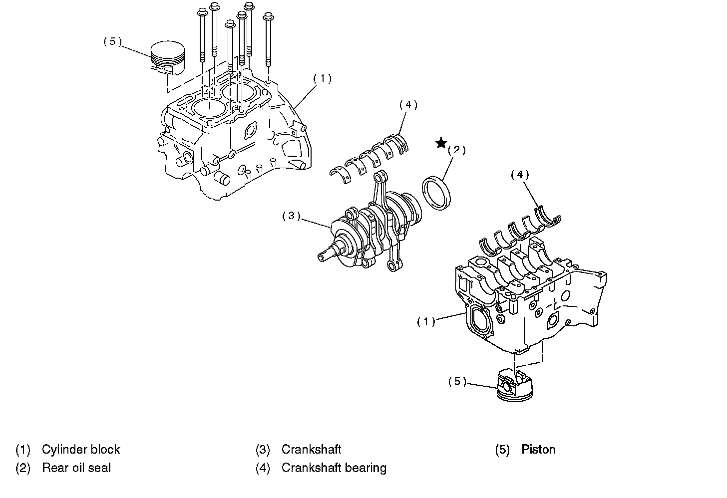 NOTE: Remove oil in the mating surface of bearing and cylinder block before installation. Also apply a coat of engine oil to crankshaft pins.