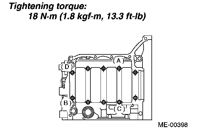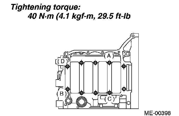 6. Tighten bolts (A to D) on left side of cylinder block more in alphabetical sequence.