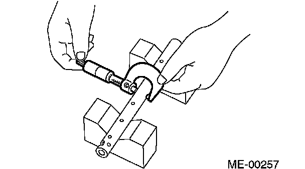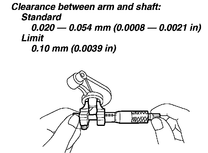 1. Measure inside diameter of valve rocker arm and outside diameter of valve rocker shaft, and determine the difference between the two (= oil clearance).