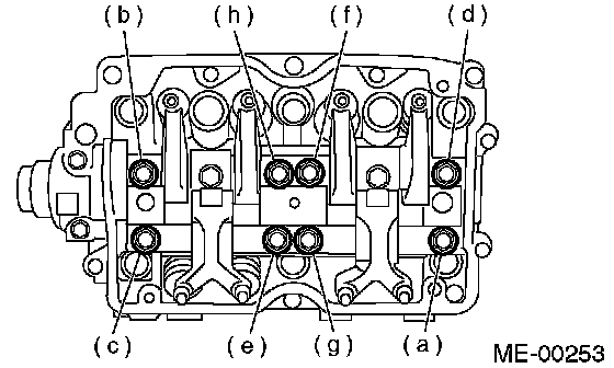 b Tighten bolts (e) through (h) in alphabetical order to specified torque.