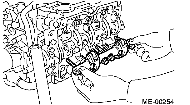 2. Arrange valve rocker arms, springs and shaft supports in assembly order and insert valve rocker shaft.
