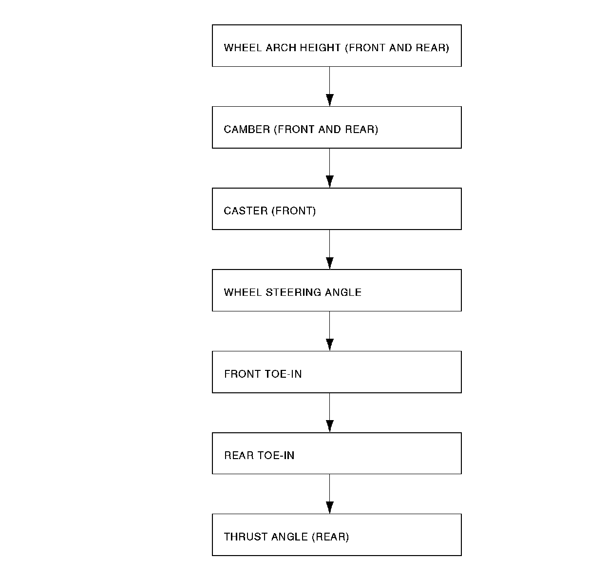 Check, adjust and/or measure wheel alignment in accordance with procedures indicated in figure:
