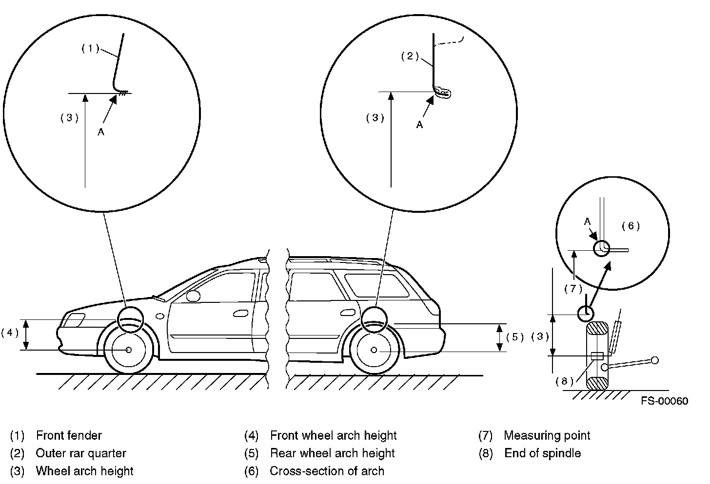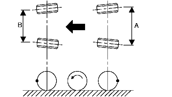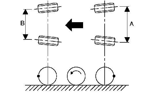 2. Mark rear sides of left and right tires at height corresponding to center of spindles and measure distance "A" between marks.