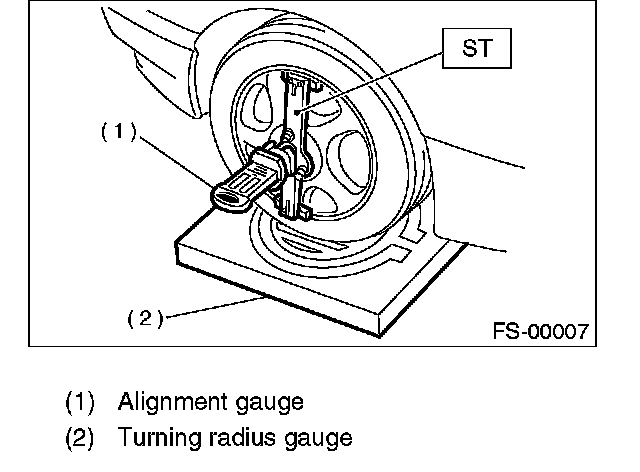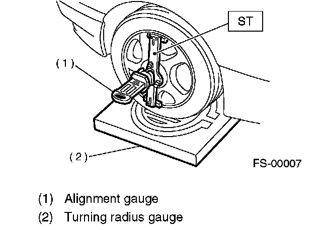 2. Set ST into the center of the wheel, and then install the wheel alignment gauge.