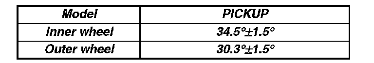 Toe-in: 0 ± 3 mm (0 ± 0.12 inch) (tolerance)