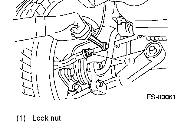1. Loosen the left and right side steering tie-rods lock nuts.