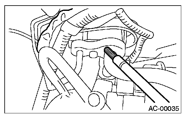11. Disconnect the drain hose from the evaporator case, and check the hose end for at least 10 seconds.
