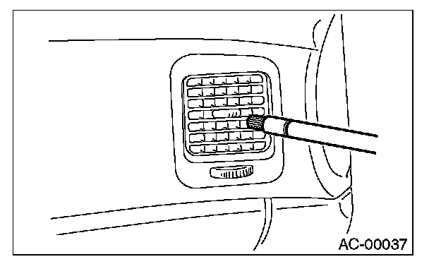 12. Turn the ignition key to ON position, and run the blower at high speed for 1 minute. Stop the blower to check the ventilation grille on the instrument panel. While moving the tester closer to the grille, run the blower for 1 or 2 seconds, then stop it.