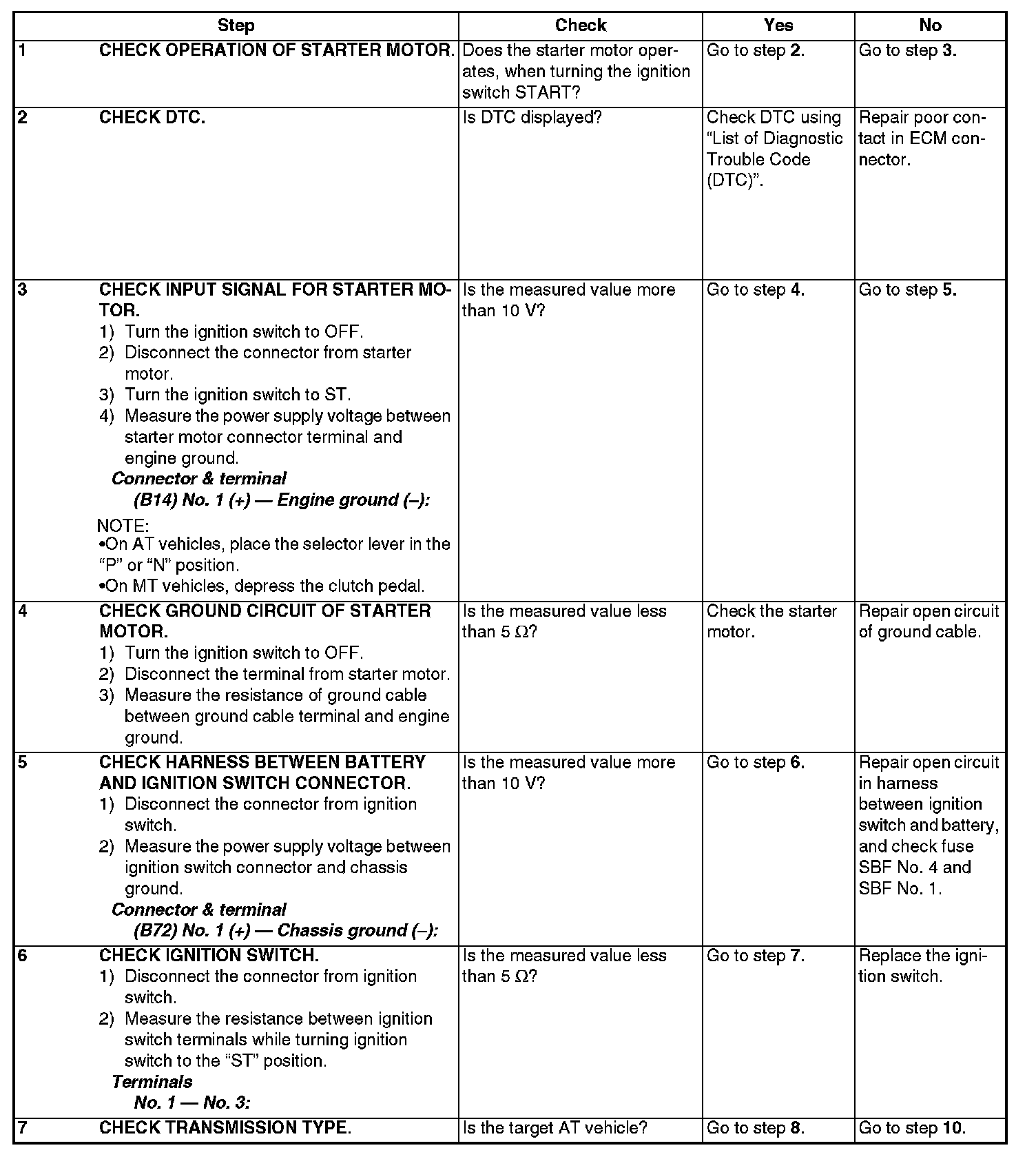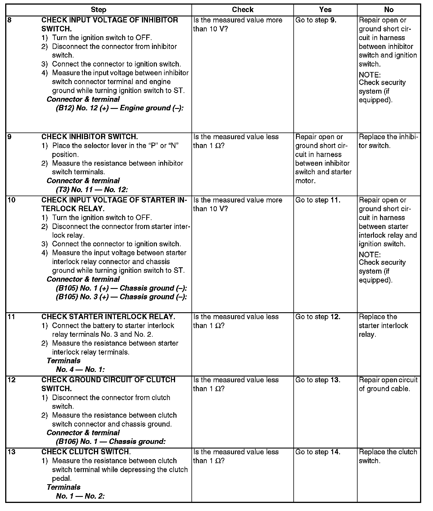 STARTER MOTOR CIRCUITCAUTION: After repair or replacement of malfunctioning parts, conduct CLEAR MEMORY MODE and INSPECTION MODE.