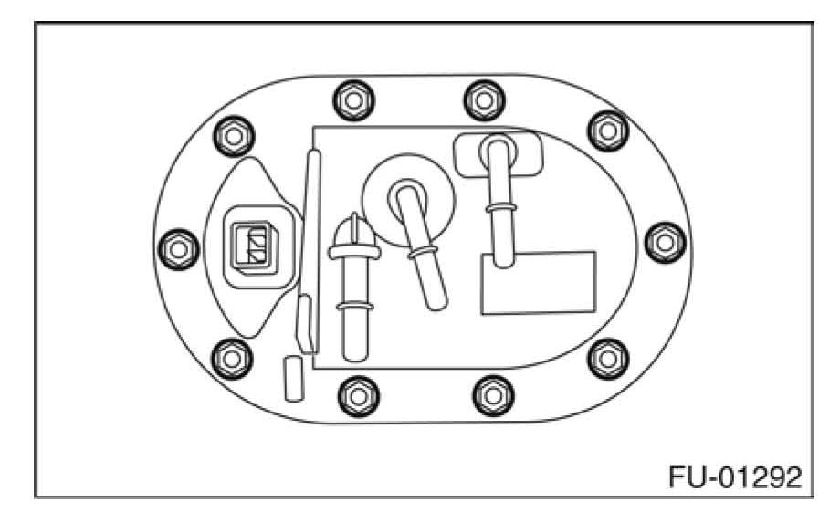 6) Remove nuts which secure fuel pump assembly onto fuel tank
