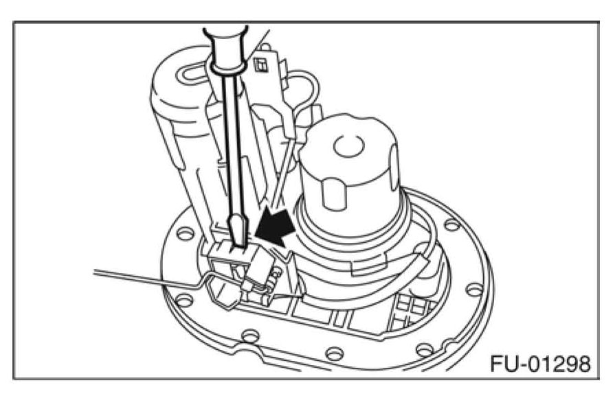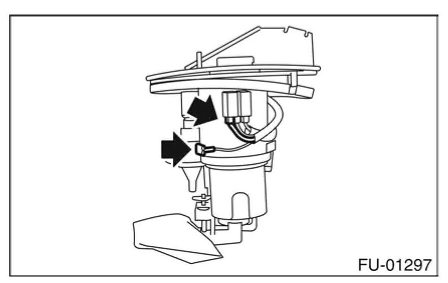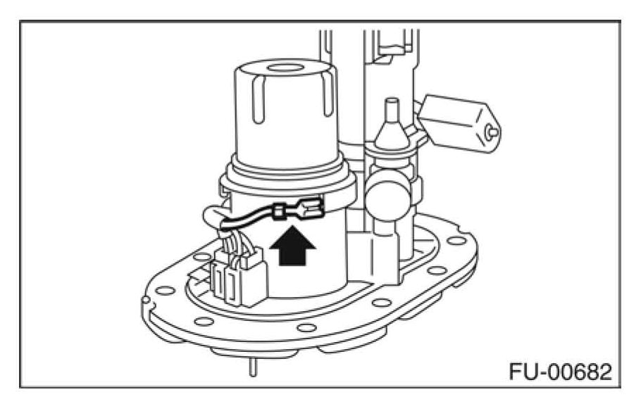 ^ Disconnect the electrical connector from fuel pump.