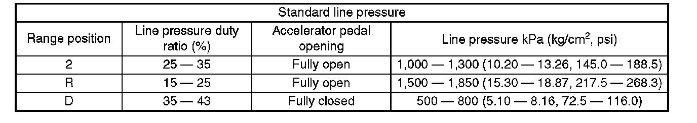 1. Before measuring the line pressure, apply both foot and parking brakes with all wheels chocked (Same as for stall test conditions).