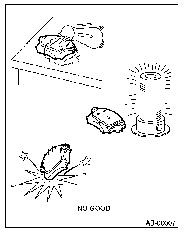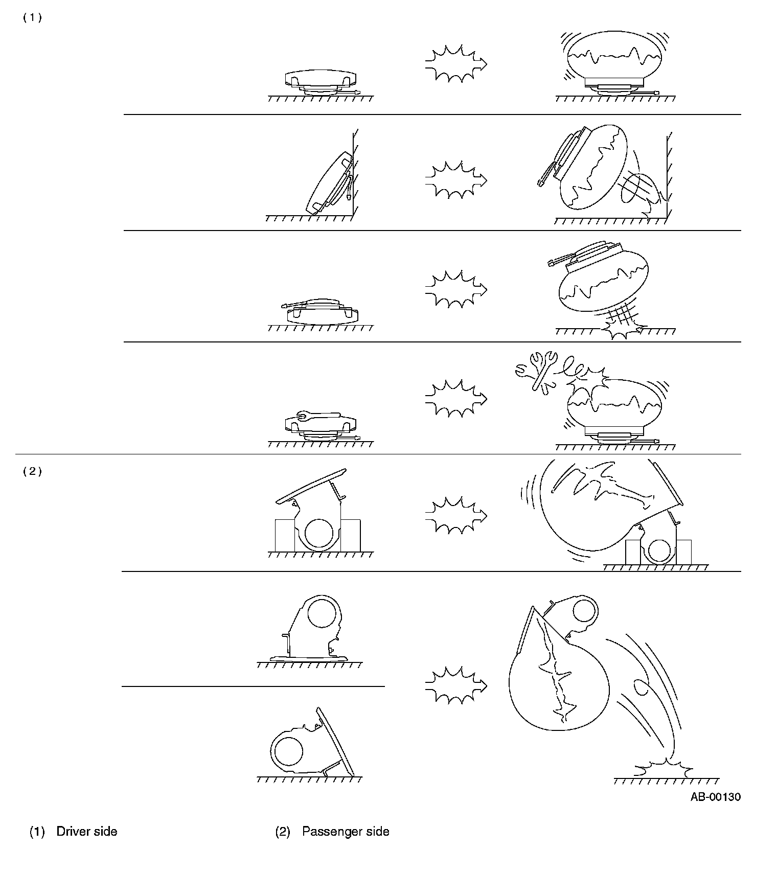 - When storing a removed airbag module, do not place any objects on it or pile airbag modules on top of each other. If the airbag inflates for some reason when it is placed with its pad side facing downward or under any object, a serious accident may result.