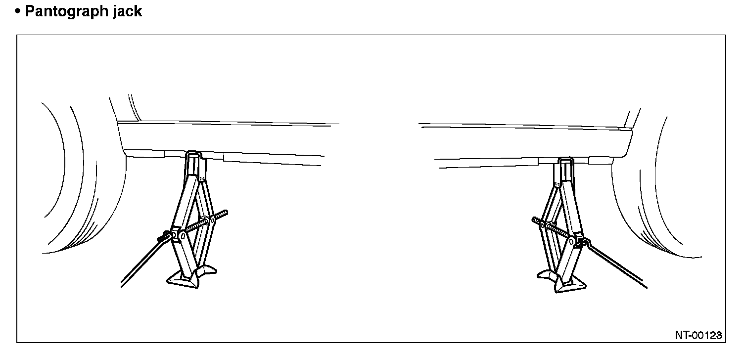When using a lift or jack-ridged rack to raise a vehicle, always follow instructions concerning jack-up points and weight limits to prevent the vehicle from falling, which could result in injury. Be especially careful to make sure the vehicle is balanced before raising it.