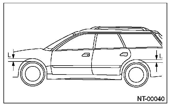 Measure distance L between tire highest point to arch highest point before tie-down and after tie-down. Difference of measurement value (drop height) shall be within 50.8 mm (2.00 in). Make sure to fix a vehicle securely.