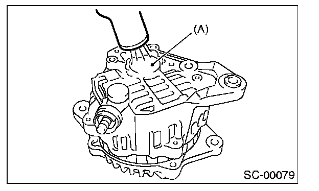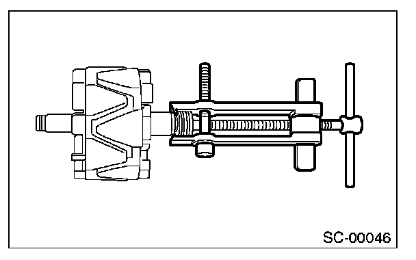 4. Heat the bearing box in rear cover [50 to 60 degree C (122 to 140 degree F)], and then press the rear bearing into rear cover.