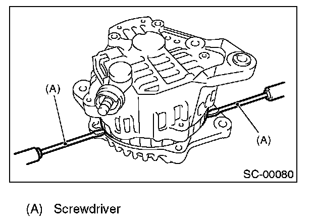 3. Then insert the tip of a flat tip screwdriver into the gap between stator core and front cover. Pry them apart to disassemble.
