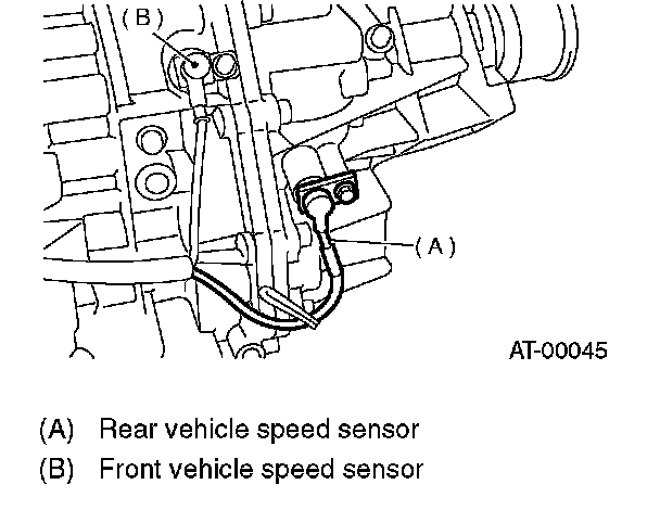 7. Install the front and rear vehicle speed sensor, and also the torque converter turbine speed sensor, and then fasten the harness.