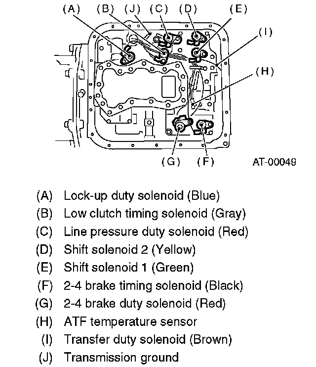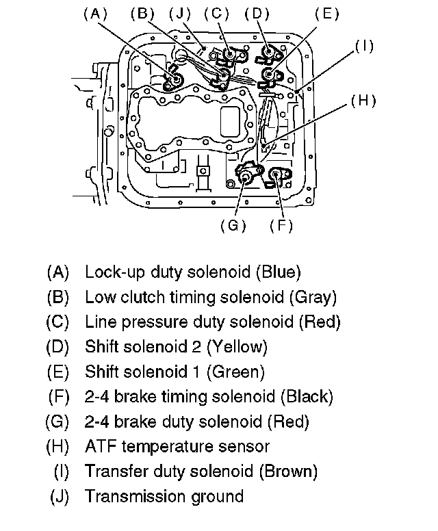 23. Disconnect the duty solenoid connectors, and then disconnect the ATF temperature sensor from control valve body. (Non-TURBO model)