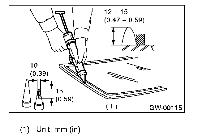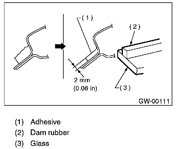 NOTE: For minimum drying time and time the vehicle must be left standing before driving after bonding, follow instructions or instruction manual from the adhesive manufacturer.