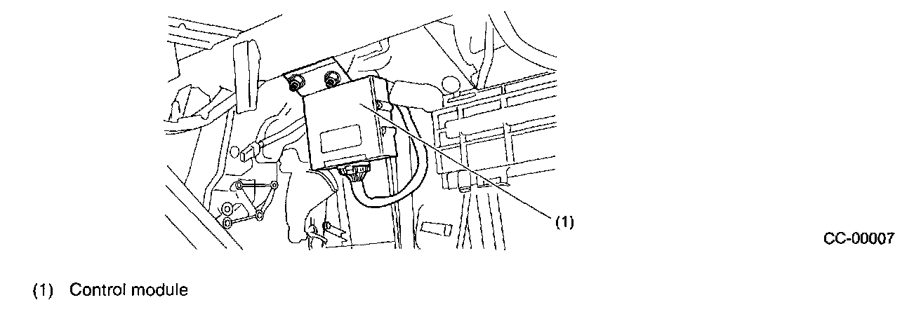 - The control module (1) is located behind the glove compartment.