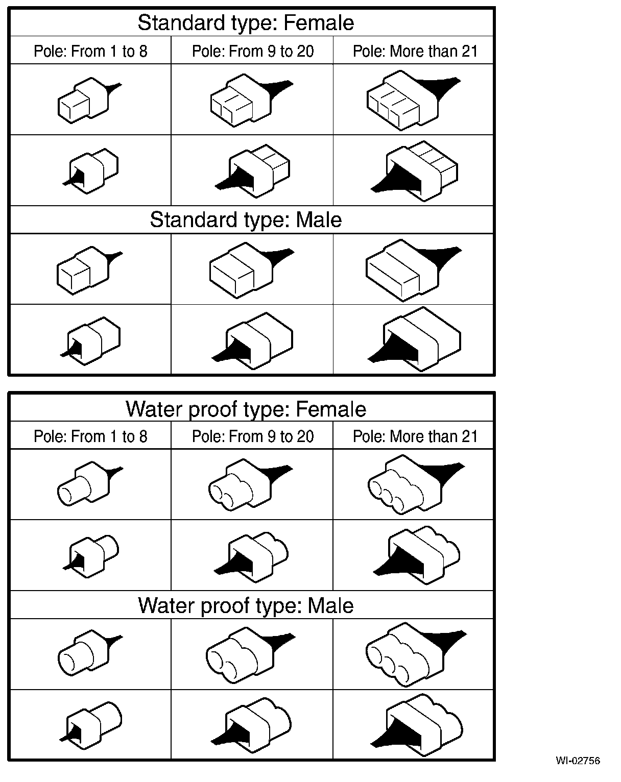 A number of connector symbols are used in each wiring diagram to easily identify the wiring harness connectors.