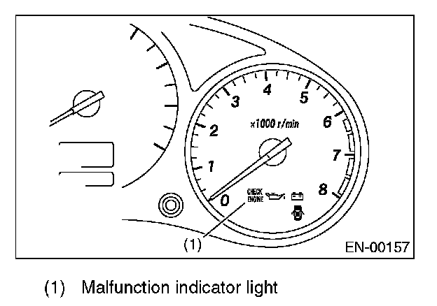 ACTIVATION OF MALFUNCTION INDICATOR LIGHT1. When the ignition switch is turned to ON (engine off), the malfunction indicator light in the combination meter come on.