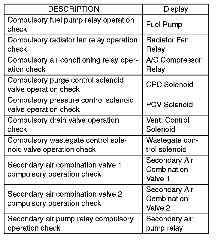 13. Pressing the [NO] key completes the compulsory operation check mode. The display will then return to the "Actuator ON/OFF Operation" screen.