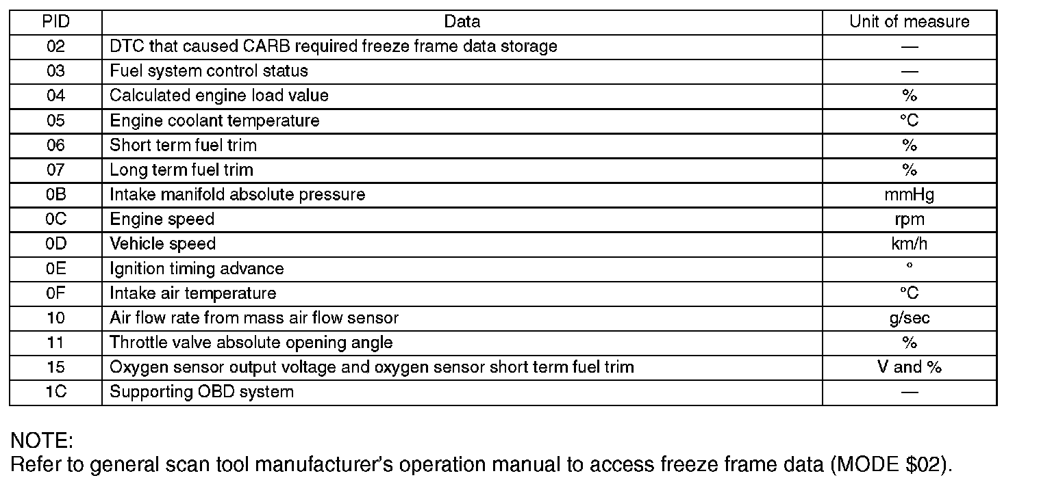 3. MODE $02 (POWER TRAIN FREEZE FRAME DATA)