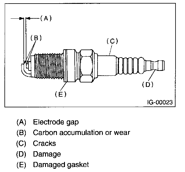 INSPECTIONCheck the electrodes and inner and outer porcelain of plugs, noting the type of deposits and the degree of electrode erosion.