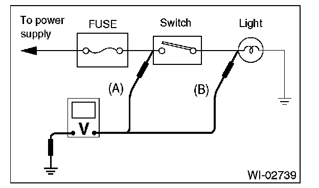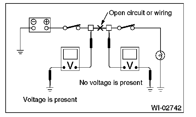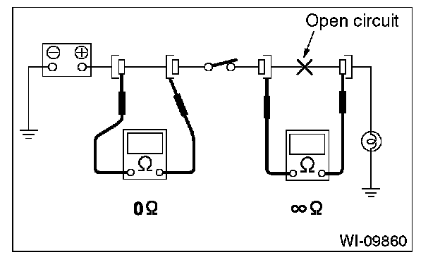 Disconnect all connectors affected, and check continuity in the wiring between adjacent connectors. When the ohmmeter indicates "infinite", the wiring is open.