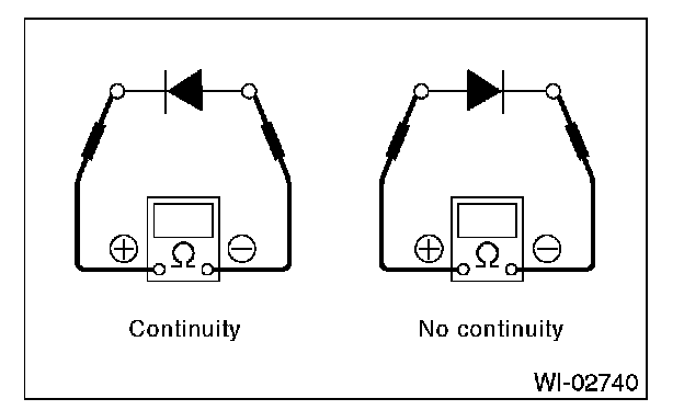 2. Use an ohmmeter to check for diode continuity. When contacting the negative lead to the diode positive side and the positive lead to the negative side, there should be continuity. When contacting the two leads in reverse, there should be no continuity.