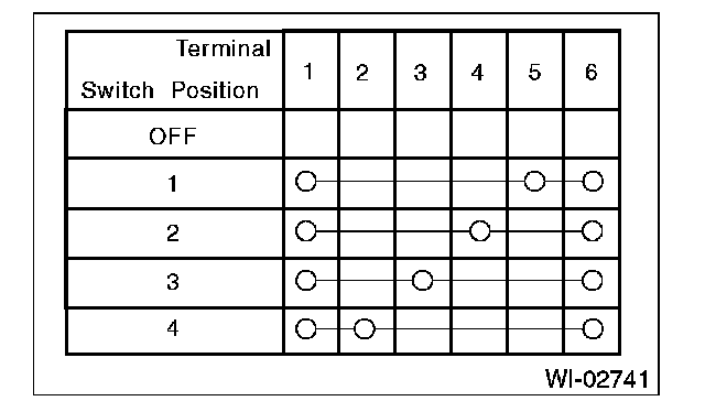 3. The symbol "O--O" indicates that continuity exists between two points or terminals. For example, when a switch position is at �3�, continuity exists among terminals 1, 3 and 6, as shown in the table below.