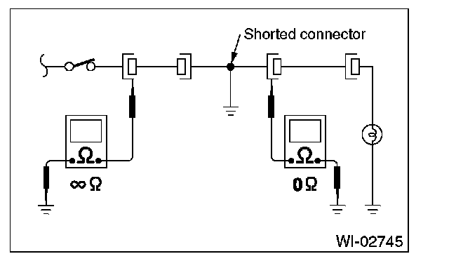 Disconnect all affected connectors, and check continuity between each connector and ground. When the ohmmeter indicates continuity between a particular connector and a ground, that connector is shorted.