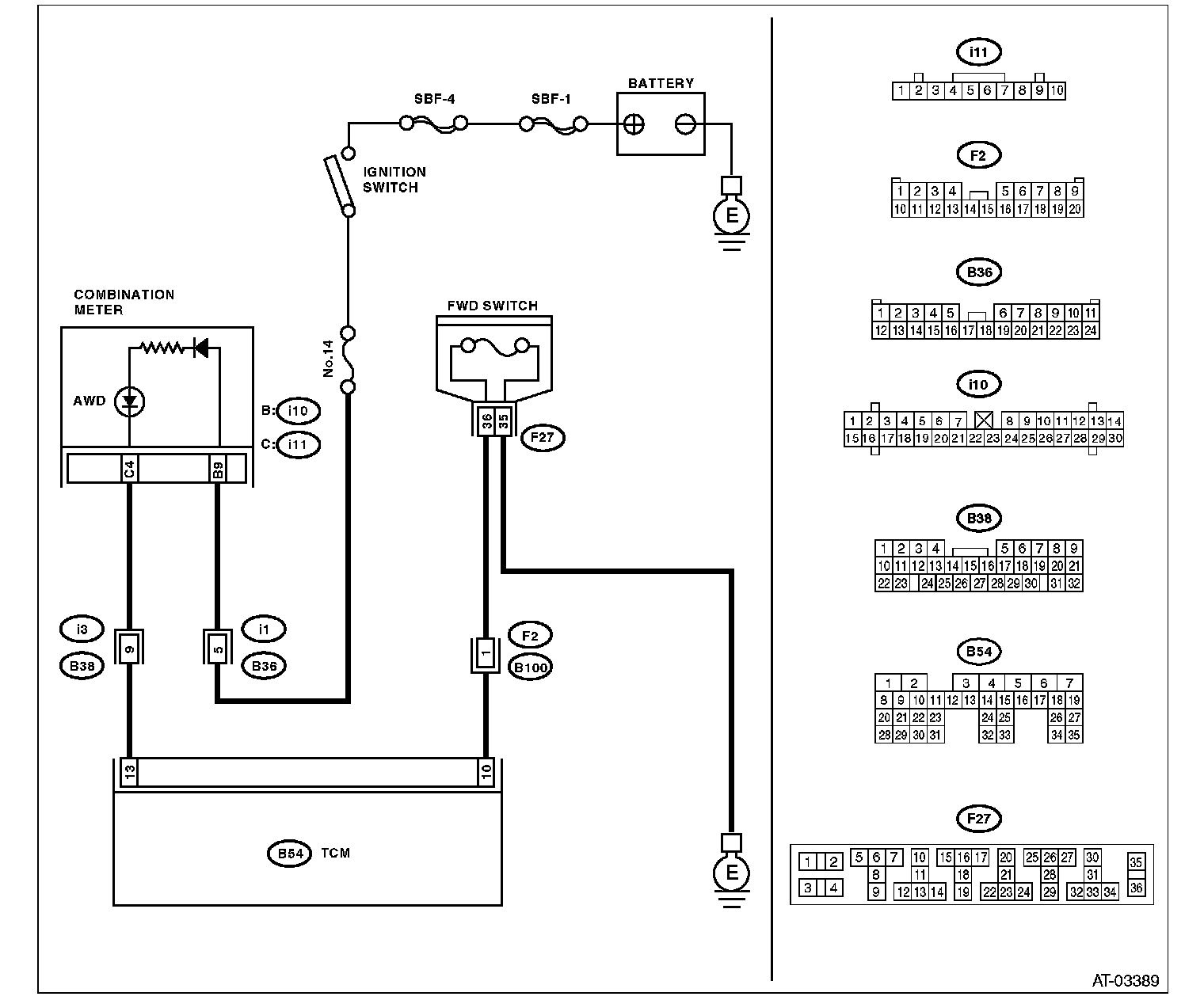 FWD signal circuit is open or shorted.