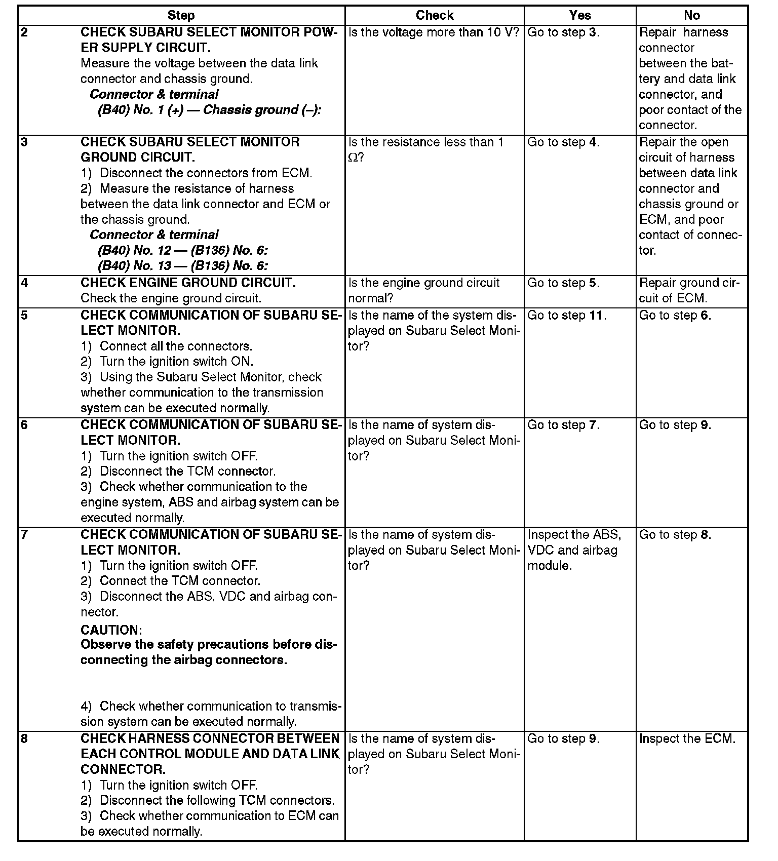 Diagnostic Procedure for Subaru Select Monitor Communication
