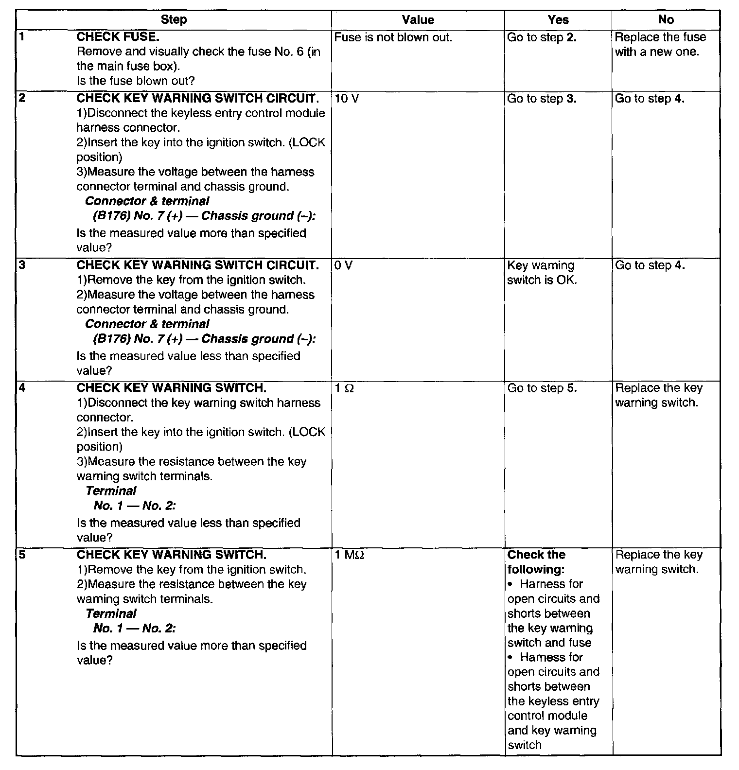 Check Key Warning Switch