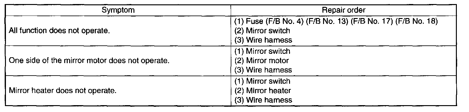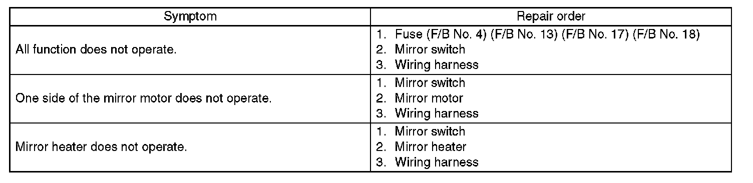 Remote Control Mirror System - Inspection: