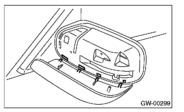 2. Press-in the upper side clips (A) from inside of outer mirror.