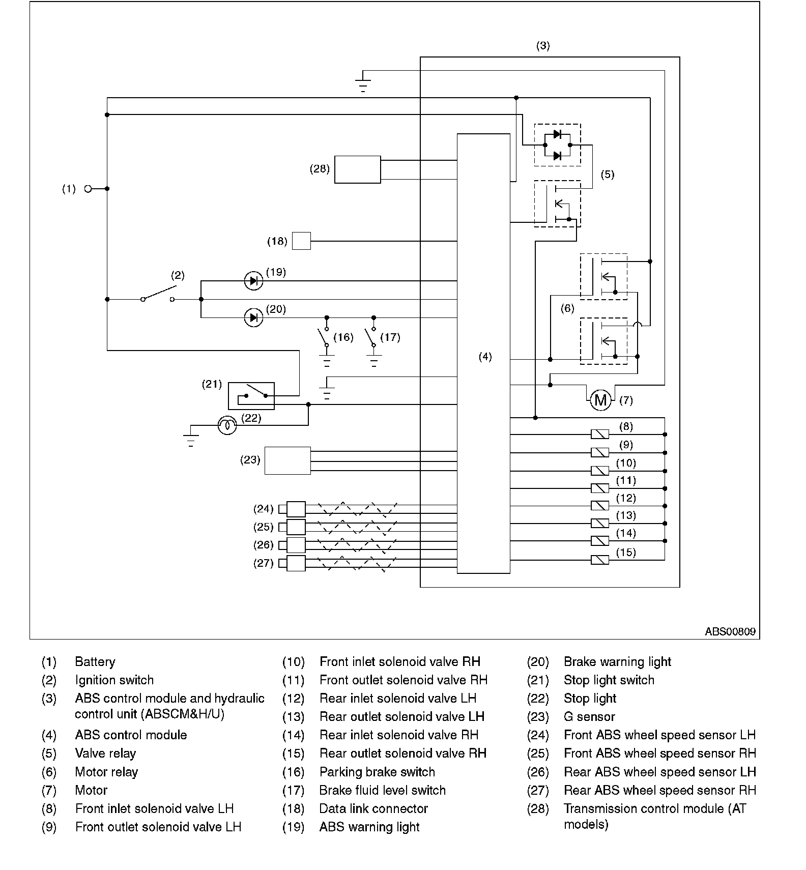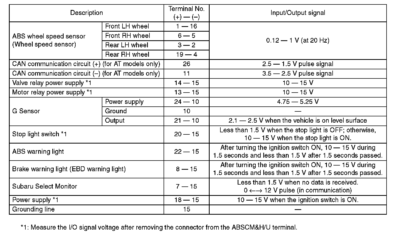 Terminal numbers in ABSCM & H/U connector are shown in the figure.