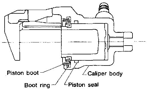 2) Apply a coat of brake fluid to the piston seal and fit piston seal in groove on caliper body.