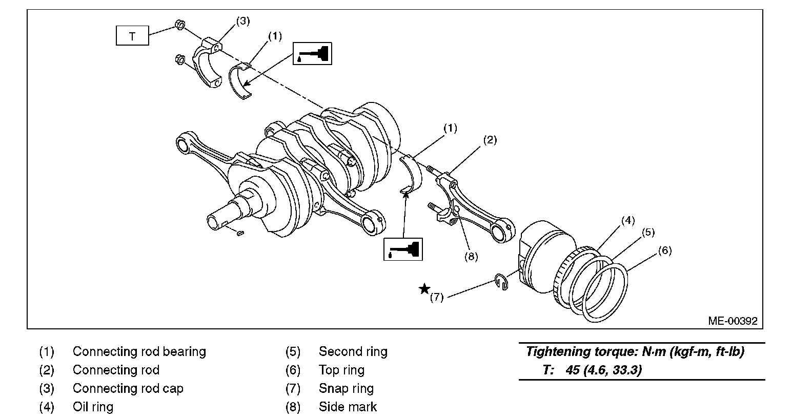 NOTE: Arrange the removed connecting rod, connecting rod cap and bearing in order, to prevent confusion.