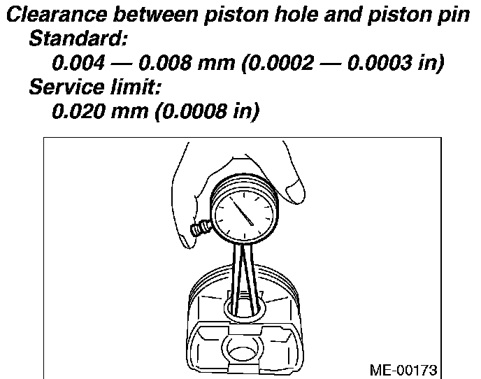 3. Make sure that the piston pin can be inserted into the piston pin hole with a thumb at 20°C (68°F). Replace if faulty.