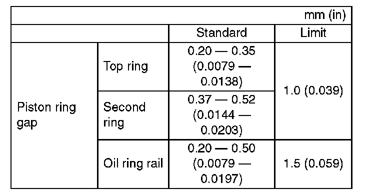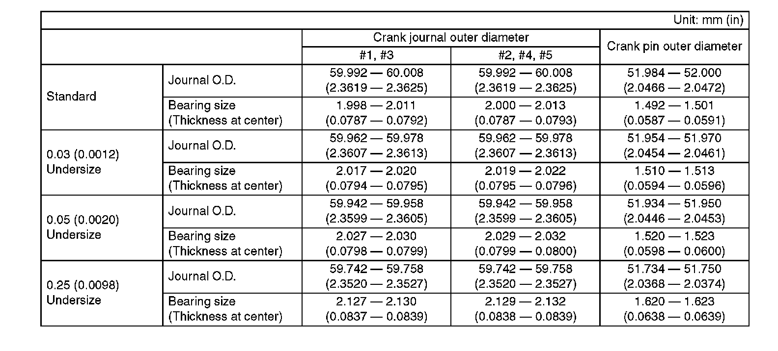 0.50 mm (0.0197 inch) oversize: 99.995 - 100.015 mm (3.9368 - 3.9376 inch)