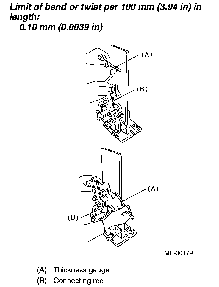 2. Check for bend or twist using a connecting rod aligner. Replace the connecting rod if the bend or twist exceeds the limit.
