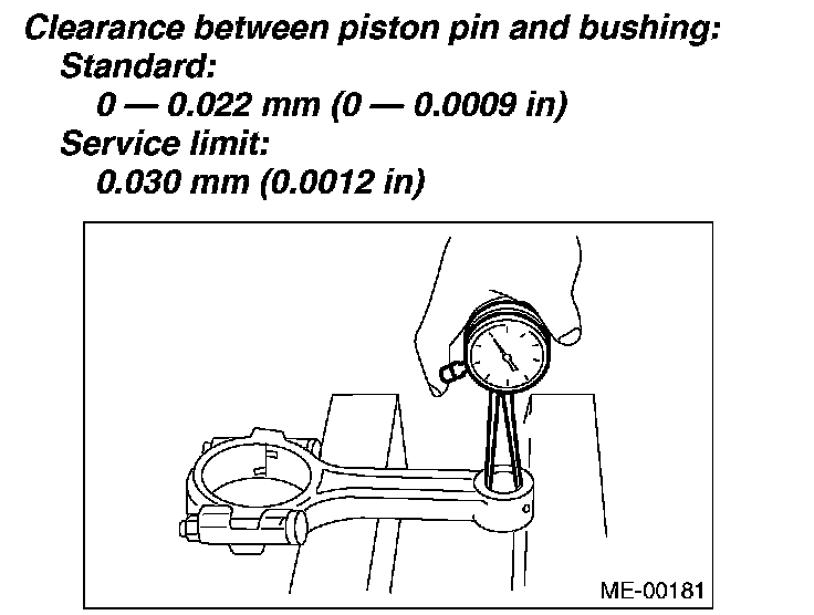 6. Inspect the bushing at connecting rod small end, and replace if worn or damaged. Also measure the piston pin clearance at connecting rod small end.