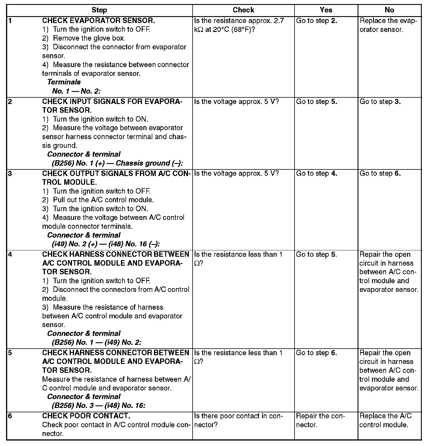 Evaporator Temperature Sensor / Switch: Testing and Inspection
