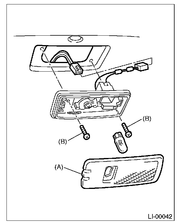 2. Remove the lens (A) and mounting screws (B) of the cargo room light.