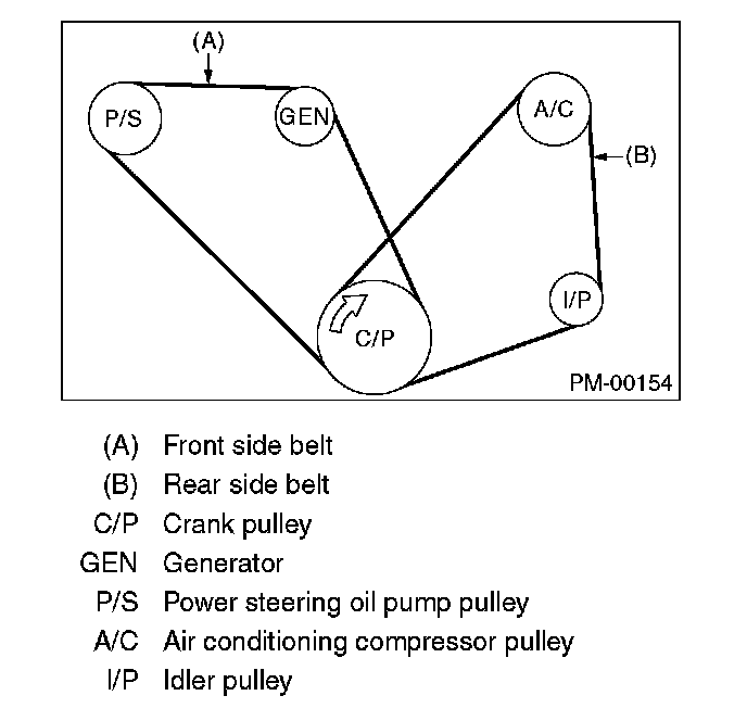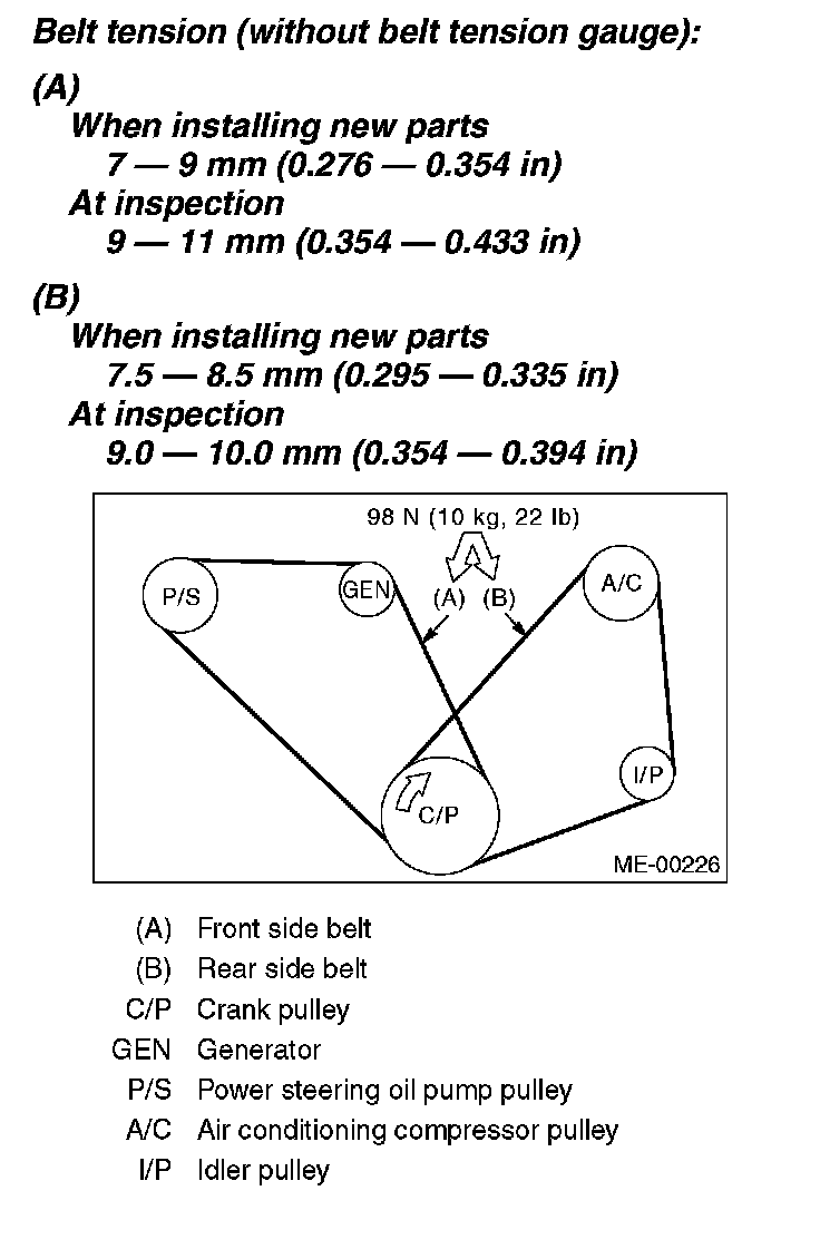3. Check the V-belt tension and adjust it if necessary by changing the generator installing position or idler pulley installing position.